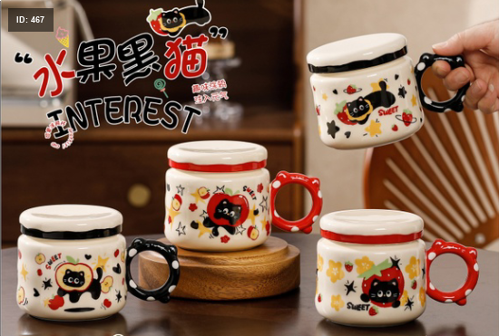 أكواب خزفية بتصميم قطّة لطيف ومرح