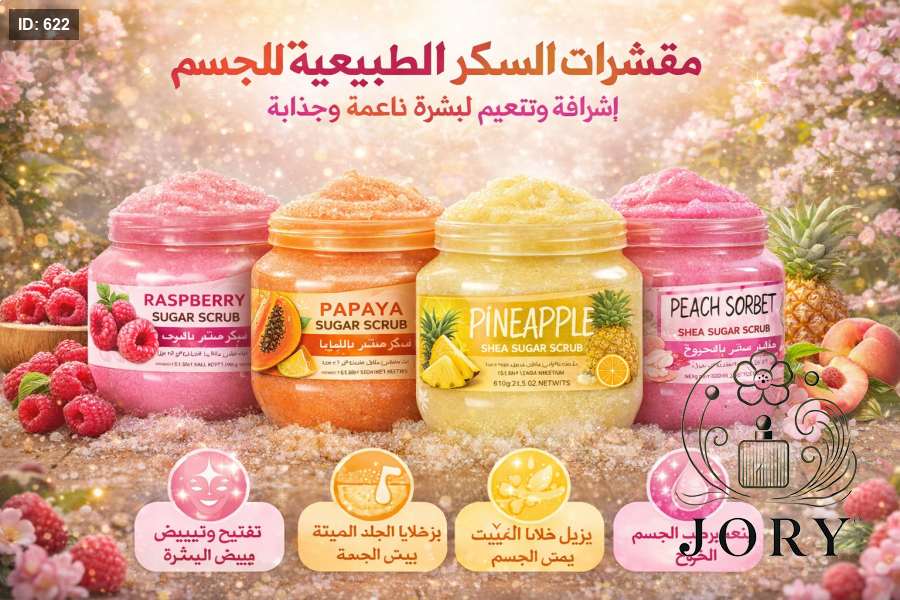 تجربة عناية فاخرة تجمع بين التقشير، الترطيب، والتفتيح بتركيبة غنية من السكر الطبيعي وخلاصات الفواكه